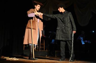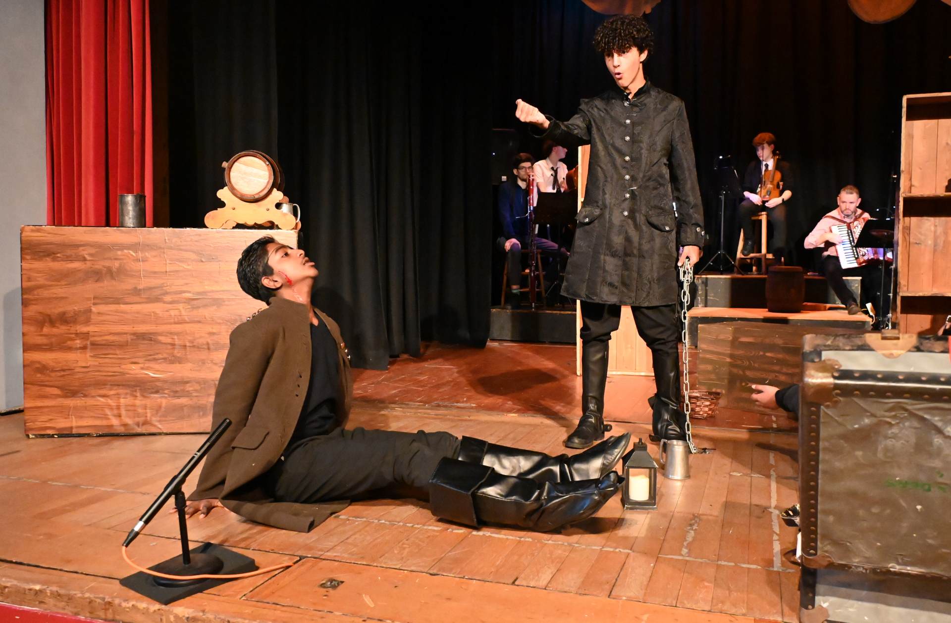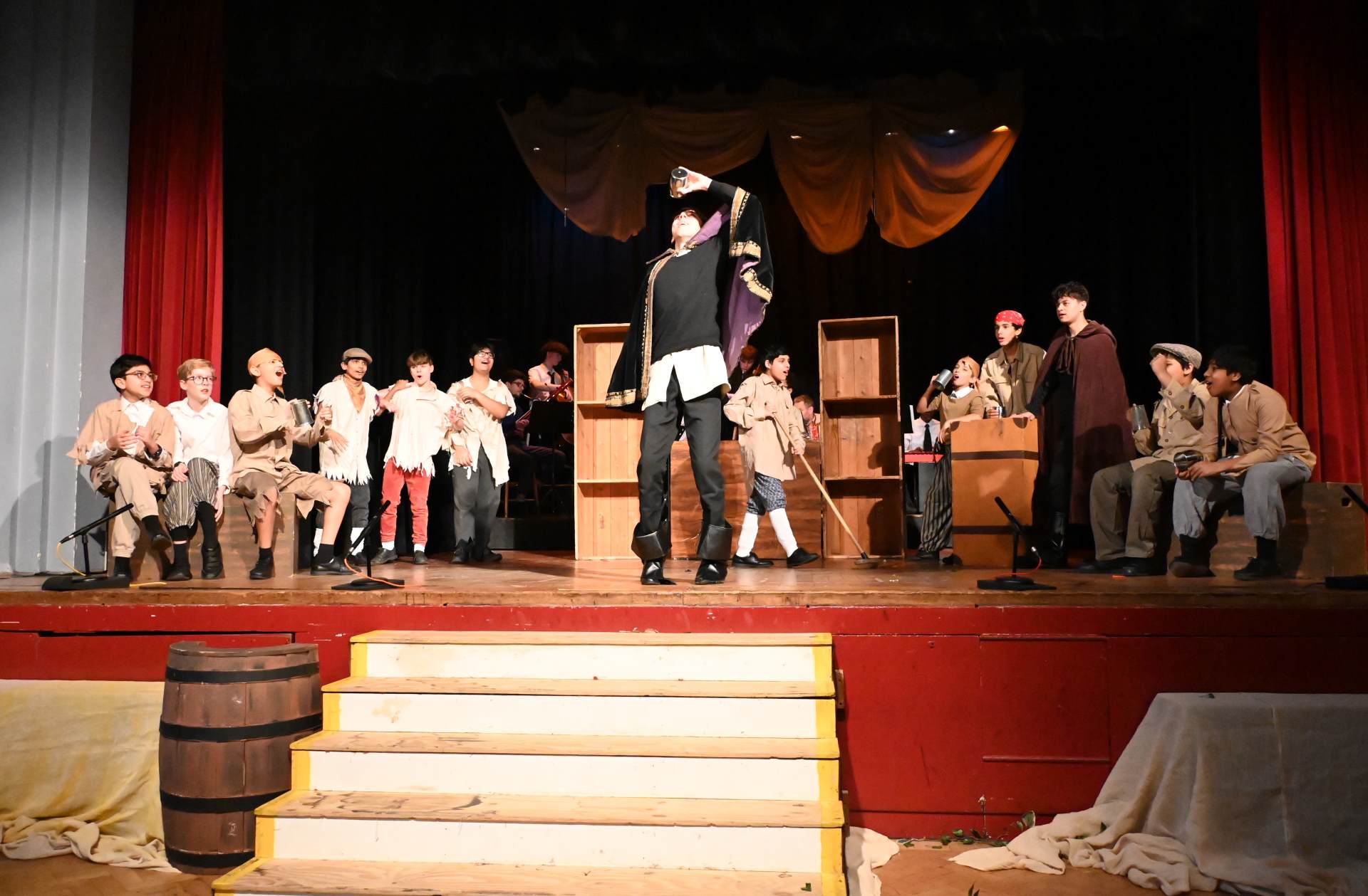 This year’s production was an adaptation of the Robert Louis Stevenson classic novel, ‘Treasure Island’. The audience were invited to come aboard on an adventure to find lost treasure in the company of young Jim Hawkins and the legendary Long John Silver. Nearly 60 students took part in this ambitious production – on stage as actors and musicians, and backstage as technical crew, costume and lighting. This superb and fun production brought heroism, mutiny, gun battles, treasure – plus a puppet parrot and lots of pirates!