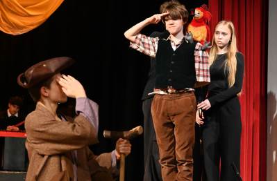 This year’s production was an adaptation of the Robert Louis Stevenson classic novel, ‘Treasure Island’. The audience were invited to come aboard on an adventure to find lost treasure in the company of young Jim Hawkins and the legendary Long John Silver. Nearly 60 students took part in this ambitious production – on stage as actors and musicians, and backstage as technical crew, costume and lighting. This superb and fun production brought heroism, mutiny, gun battles, treasure – plus a puppet parrot and lots of pirates!