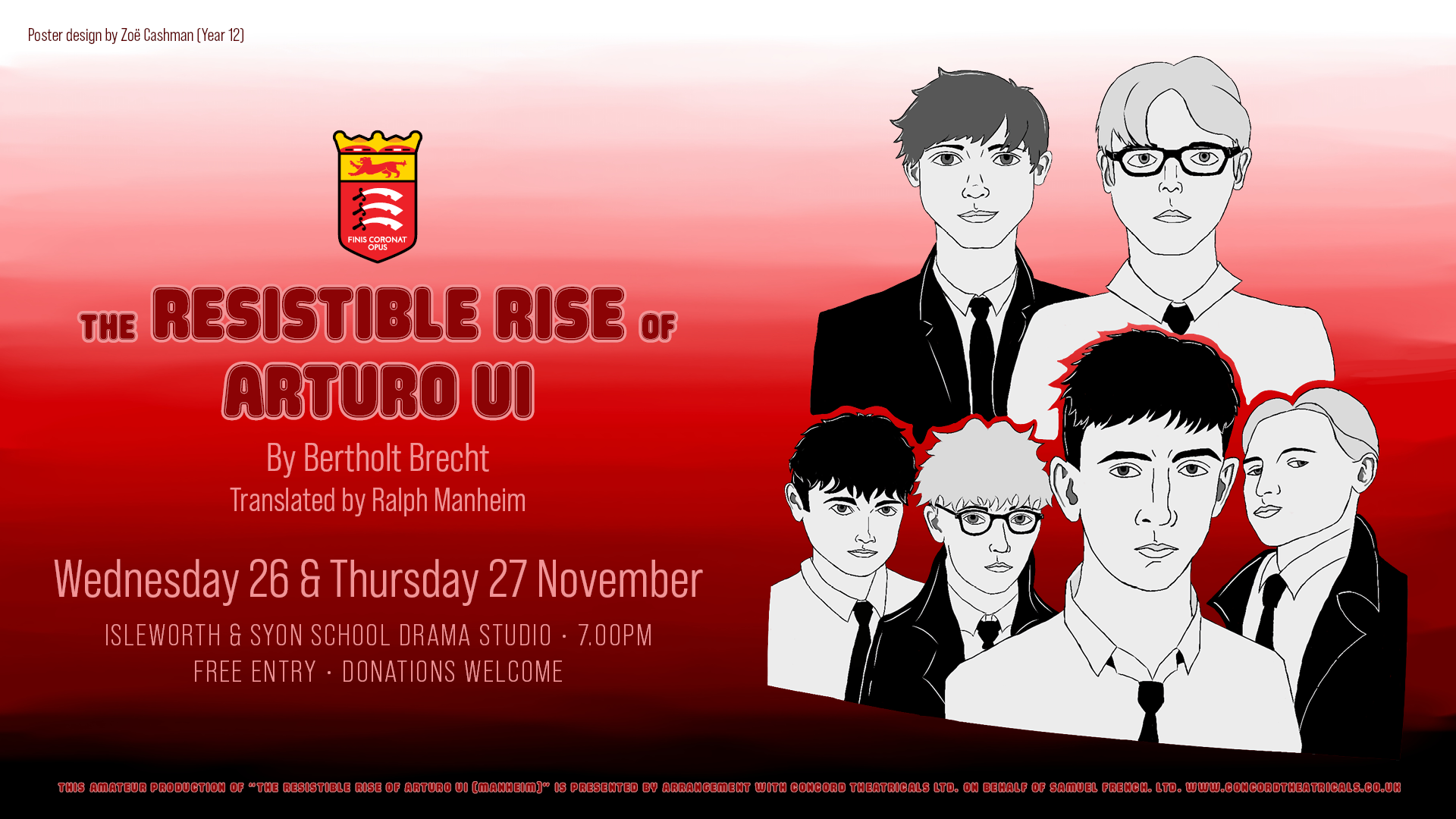 This year’s poster was designed by cast member Zoë Cashman (Year 12). Please see the full poster below (click to view full size).